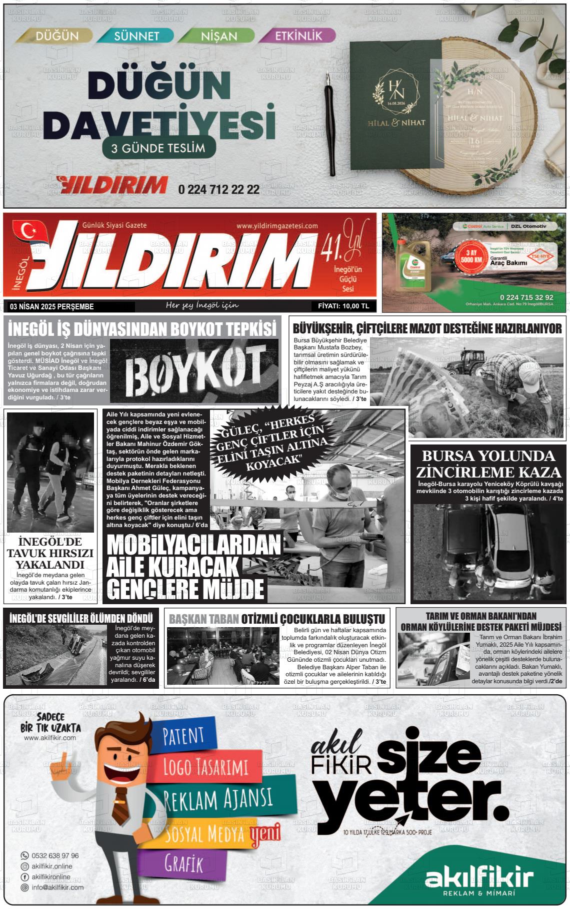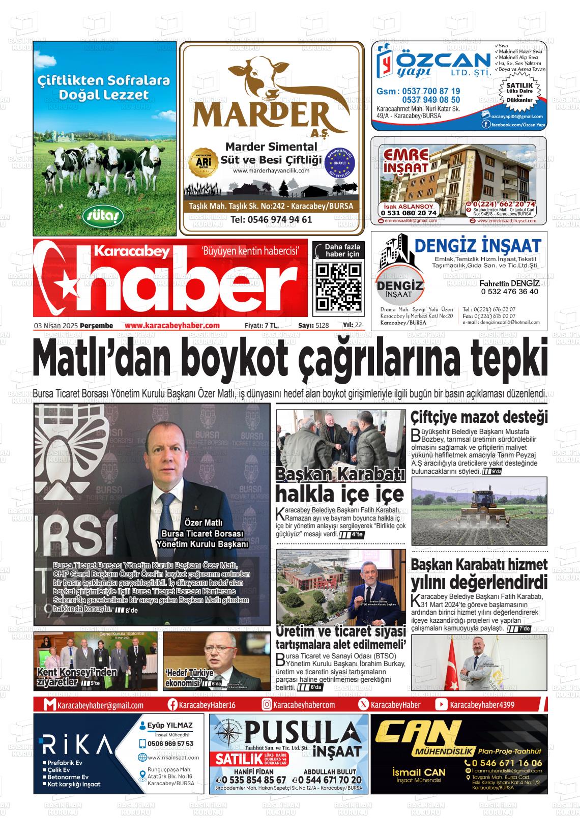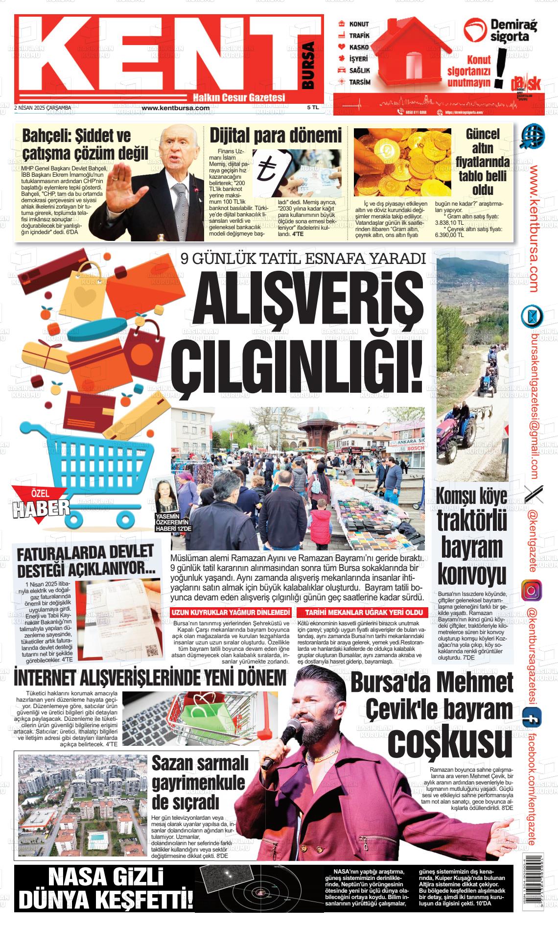 Bursa Yerel Gazeteleri 20 Ocak 2026, Salı Günü Manşeti